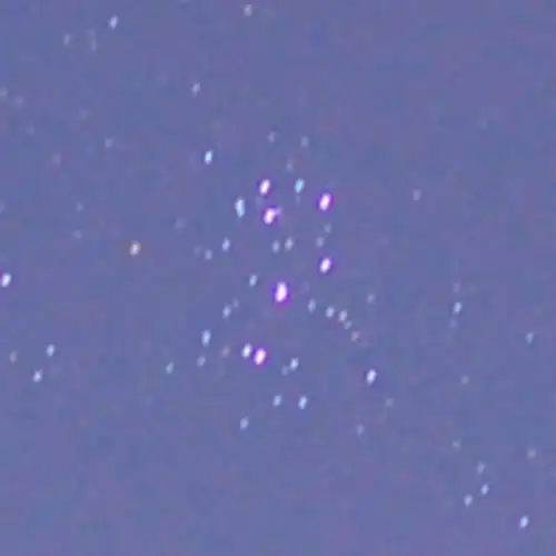 そのようにして撮ったプレアデス星団が下の写真です。プレアデス星団の部分だけ切り取ってありますが、画像の明暗や色調の調整はしてありません。