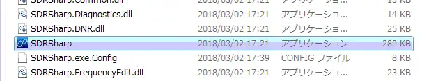 ドライバーのインストールに成功したら、同じフォールダーにある sdrsharp ファイルをダブルクリックして実行します。