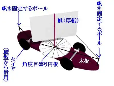 帆の働きを研究するために、下図のような模型を作ってみたら如何でしょうか。