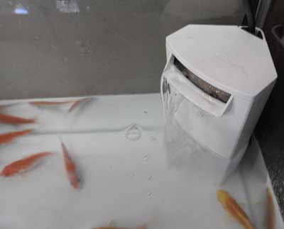 小型水槽で多数の魚を飼うときは底面濾過式がよいのですが、砂を入れるので水槽全体が重くなって設置場所に困りますし、底面濾過式のメンテナンスはけっこう面倒なものなので、冬季は餌を食べないこともあって濾過は手抜きです。